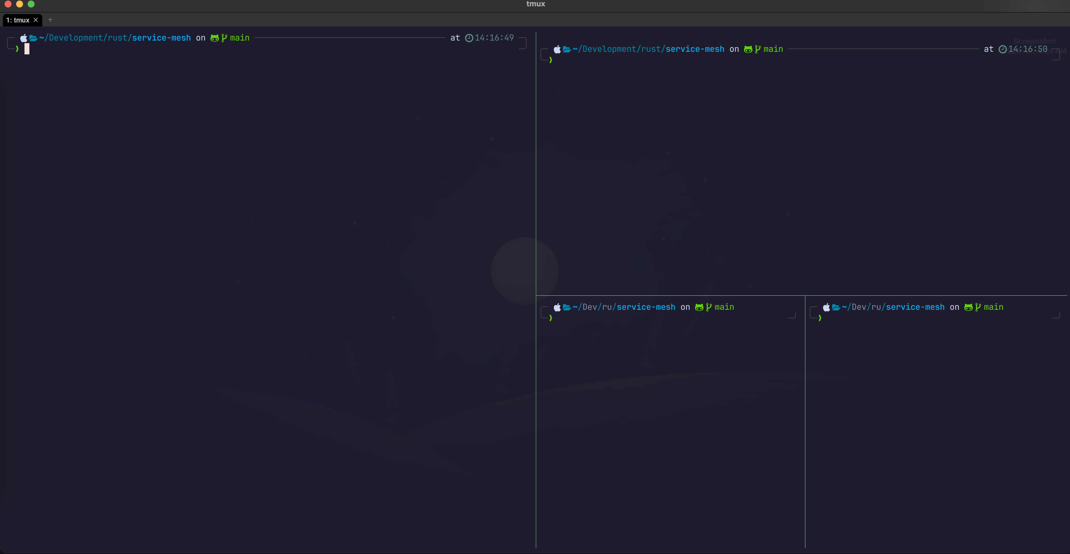 I don’t want to skip over some foundational parts that are key to my development workflow and productivity. Neovim is the editor, but it starts with my terminal emulator AND terminal multiplexer.