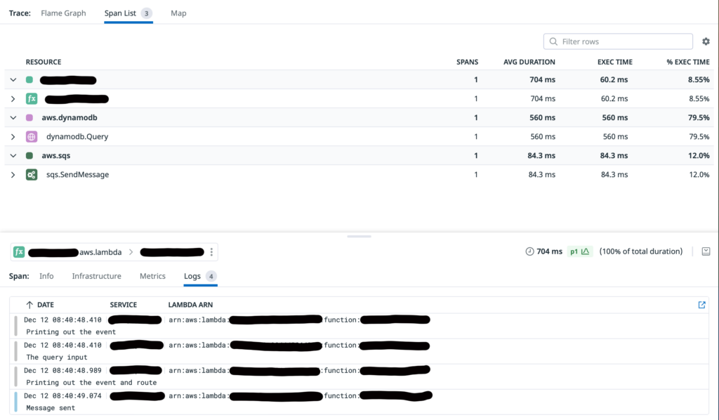 This helps with timings of things in addition to being able to group these specific operations. Again, when using Lambda with Golang and Datadog the tooling does this really nicely and the Datadog Go library makes it super simple.
